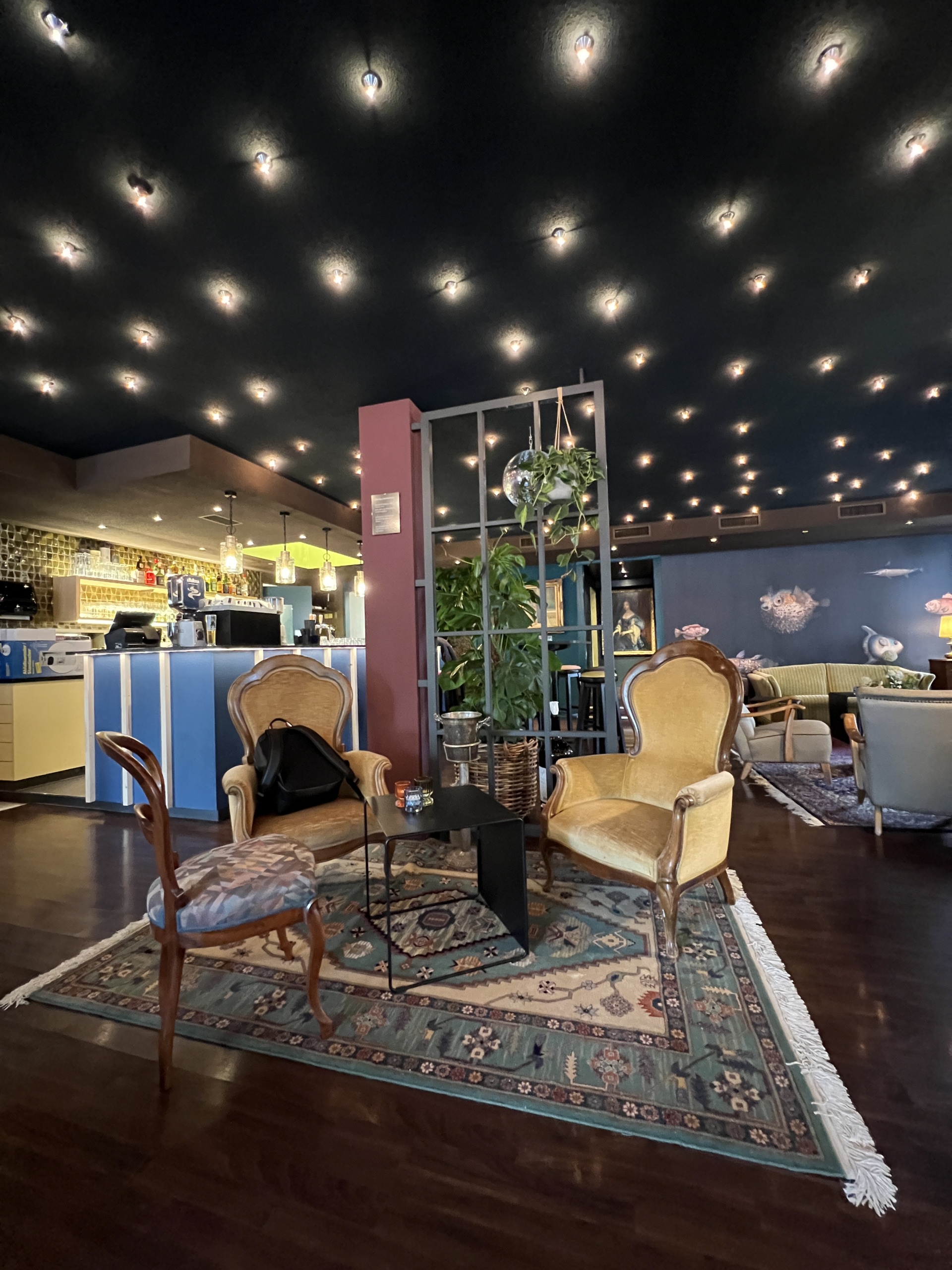 Von aussen betrachtet ist die SchlüsselBAR der Tradition verpflichtet. Neu mit unaufgeregter gepflegter Fassadengestaltung, geselligem Biergarten, in Bälde mit obligaten Lichterketten und gesponsorten Schirmen deutet nichts darauf hin, was einem im Innern erwartet. Dort begrüsst dich mit stoischem Blick unser Kugelfisch Max, welcher apropos der Einzige ist, der sich in unserem Lokal so richtig wichtig nehmen darf! Danach wandert das Auge über einen kunterbunten Stilmix von Polstermöbeln im Stil von Louis Philippe gepaart mit puristischen Loungetischen, über fast mittelalterliche Stühle und Bistrotische aus den 50 Jahren. Neu findet man in der SchlüsselBAR alles, was noch in einem gebrauchsfähigen Zustand zu sein scheint oder repariert werden konnte, erhalten und wiederverwenden ist ein Credo der SchlüsselBAR.