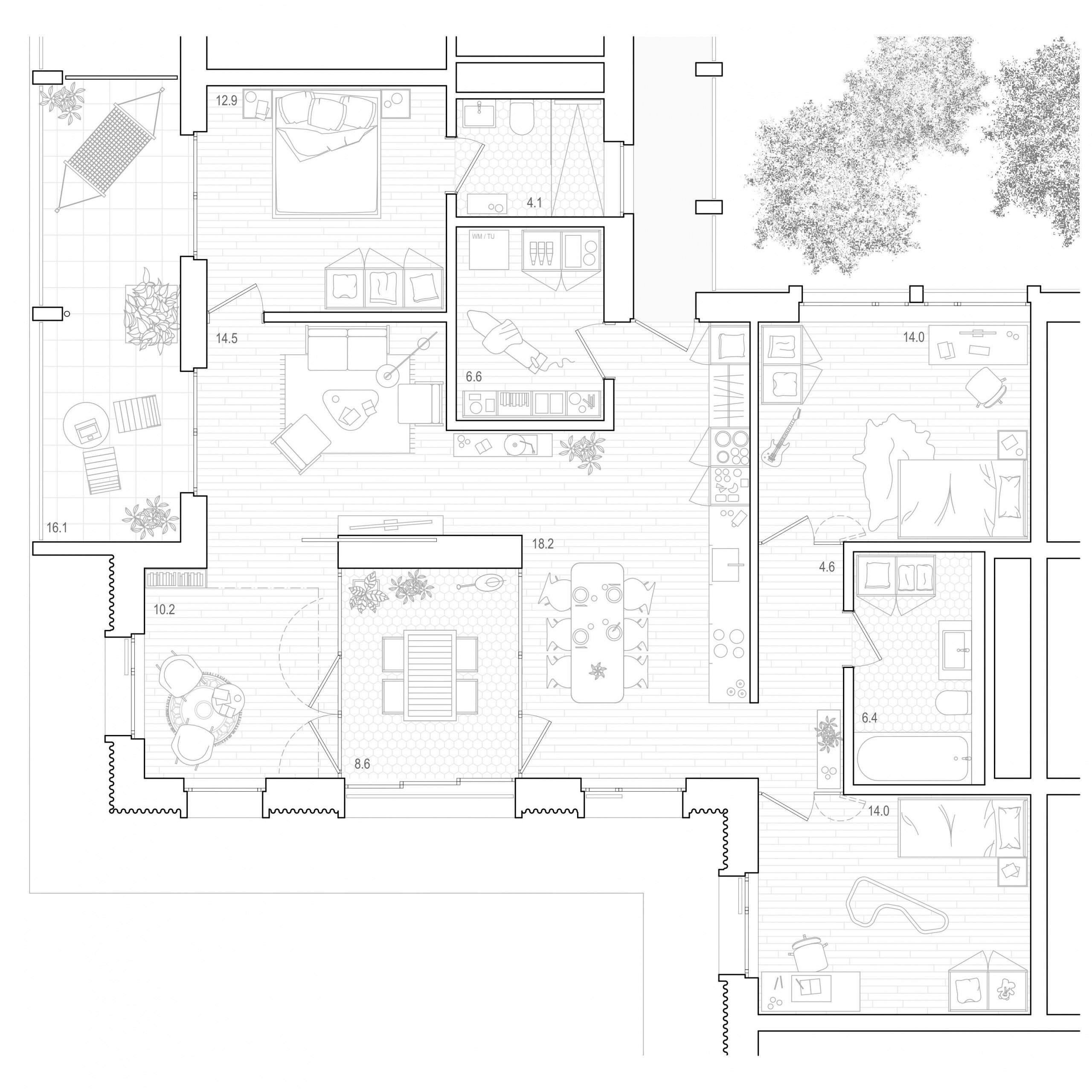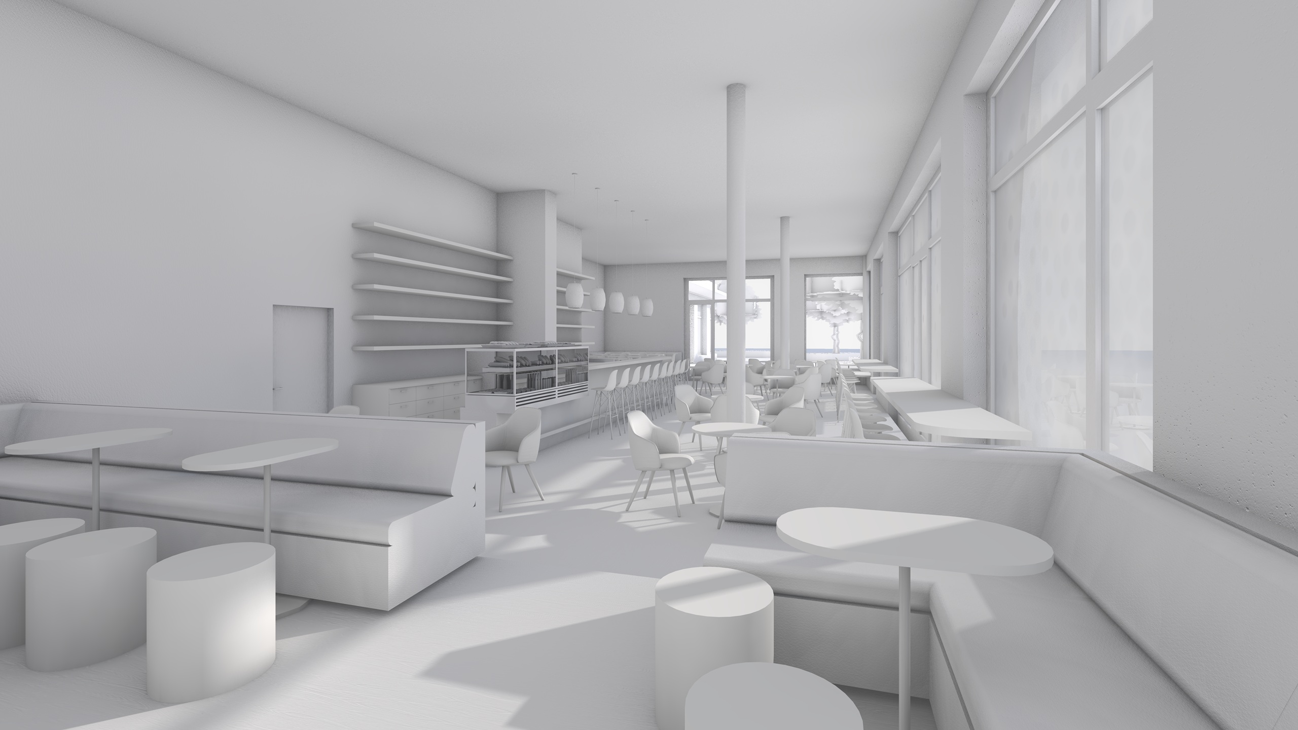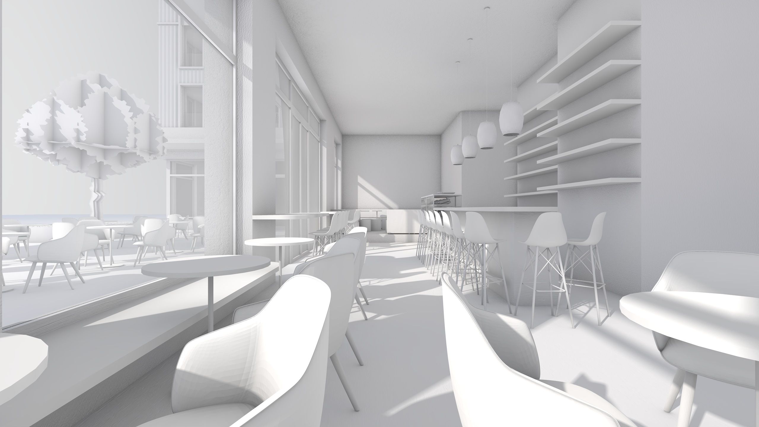 Das bestehende Atrium erhält ein Gegenüber und wird räumlich mit den akzentuiert gesetzten Loggias, welche auf die Rotunde präzis reagieren, gestärkt. Die Wegverbindung zum Bahnhof erfährt eine bewusste Aufwertung mit der Erstellung eines öffentlich zugänglichen chaussierten Hauptplatzes, welcher als Klimapuffer dient und mit Baumgruppen bespielt ist.