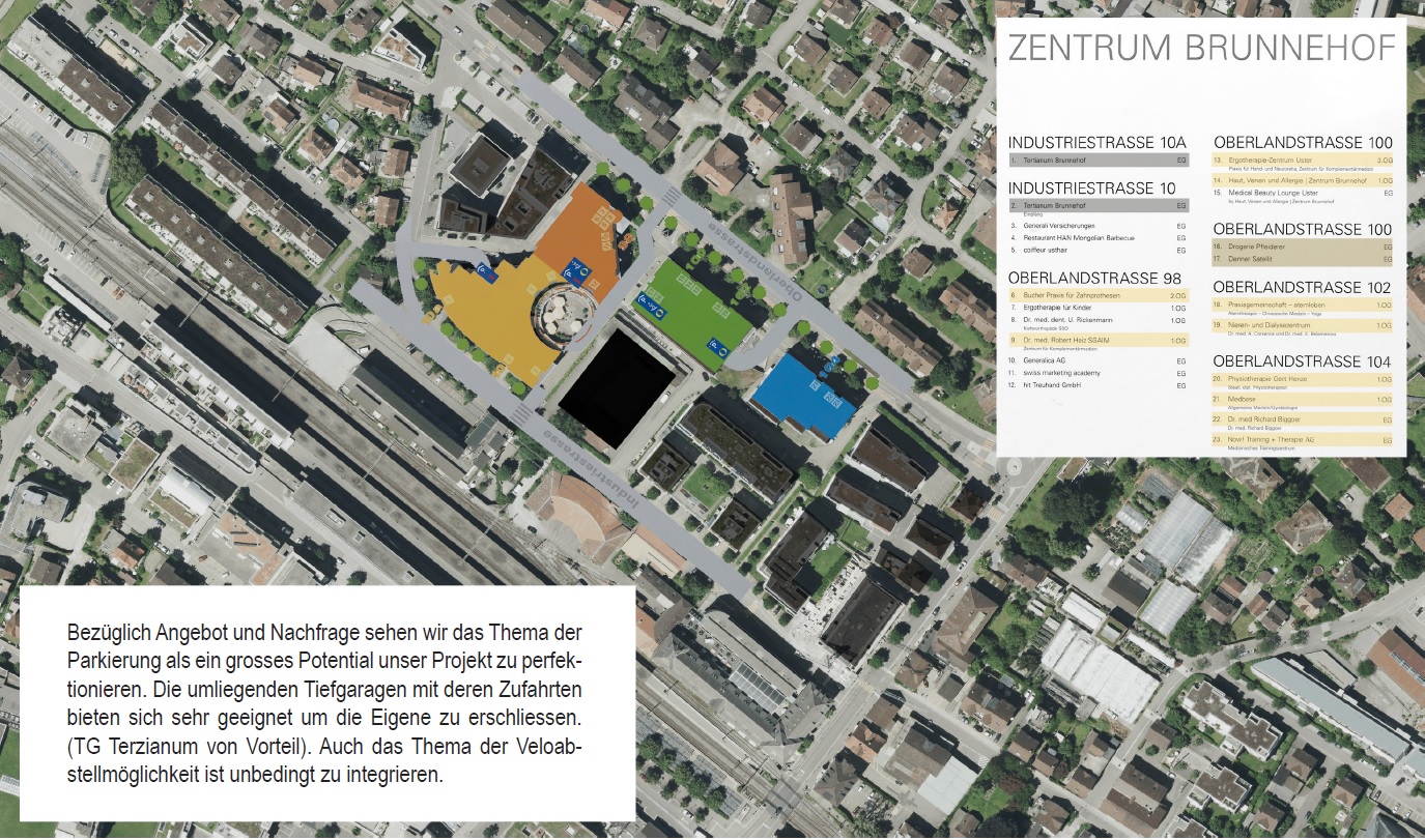 Mit dem Neubauprojekt wird die “letzte” Lücke im Brunnenhofquartier geschlossen, und hilft mit, den Mobilitätskonsum mit seinem Angebot zur Nahversorgung und Dienstleistungen in Gehdistanz für viele Kunden, Bewohner und Gäste zu reduzieren. Ein zentraler Punkt unseres Schaffens ist die Aufwertung der Wegverbindung zum Bahnhof und die Erweiterung des öffentlichen Raums.